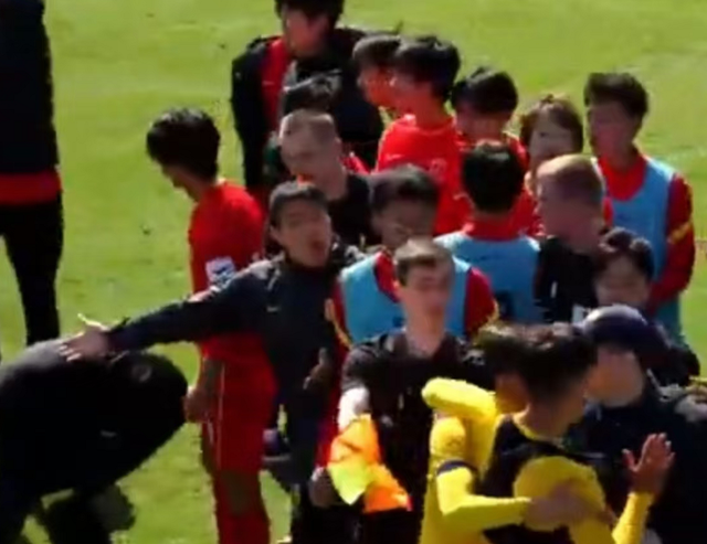 另外,此次中国U15进入欧足联发展杯,王人是踢比我方更大的队列,诚然第一轮刚2球输给俄罗斯U16,但球队很快就找回情景,能打败大一岁的哈萨克斯坦,依然杰出很光显,最舛误的是,咱们用交替声势,况兼比对方小一岁,效果全场占据主动,况兼赢下敌手,平直把对方惹急了,两边临了爆发大范围突破,看现场画面,保安王人入场了。